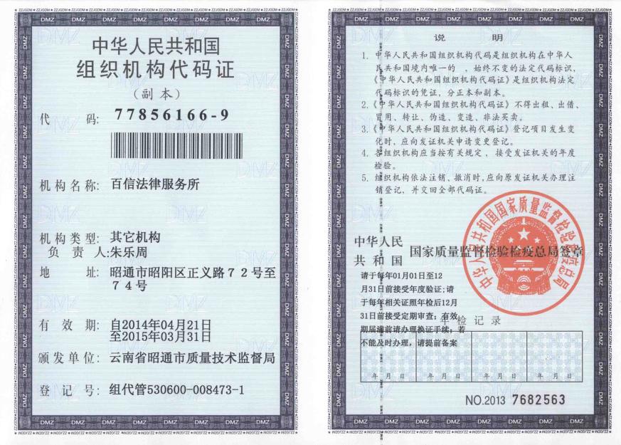 百信法律服務所組織機構代碼
